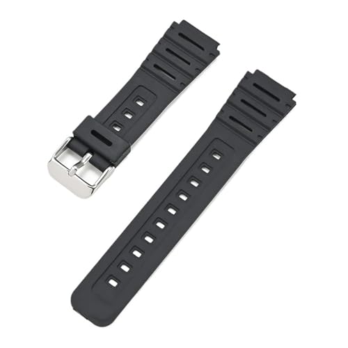 Bracelet convexe en silicone 18 mm/20 mm, compatible avec les montres Casio CA-53W, CA-61W, FT-100W, W-520U, W-720G, F-105, F-91W, for hommes et femmes(Black 01,18mm)