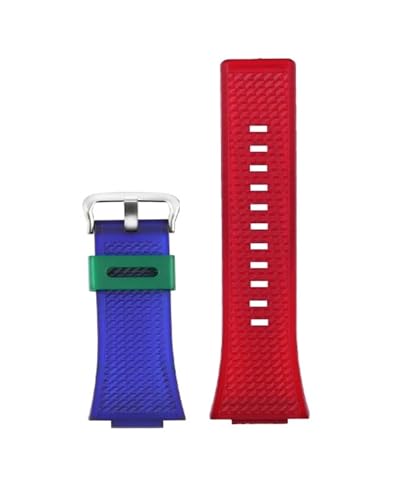 HTHRRFE Bracelet de montre en gel de silice noir, orange, transparent et blanc, 16 mm, compatible avec le bracelet de montre Casio GM-110, joint convexe en caoutchouc(Blue red-silver)