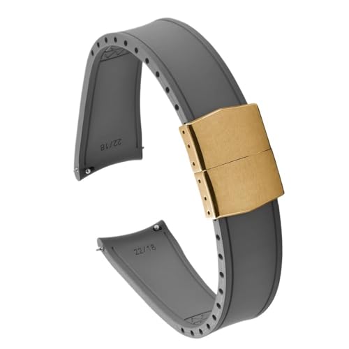 Bracelet de montre de plongée universel en caoutchouc à boucle pliante et extrémité incurvée de 20/22 mm, compatible avec Omega/Casio/Seiko(Gray-Gold Buckle,22mm)