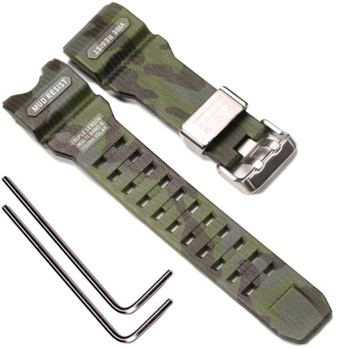 Bracelet de rechange en résine de camouflage compatible avec Casio G-shock GWG-1000 GWG1000 Mudmaster - Bracelet de sport étanche - Accessoires de montre (camouflage vert militaire)