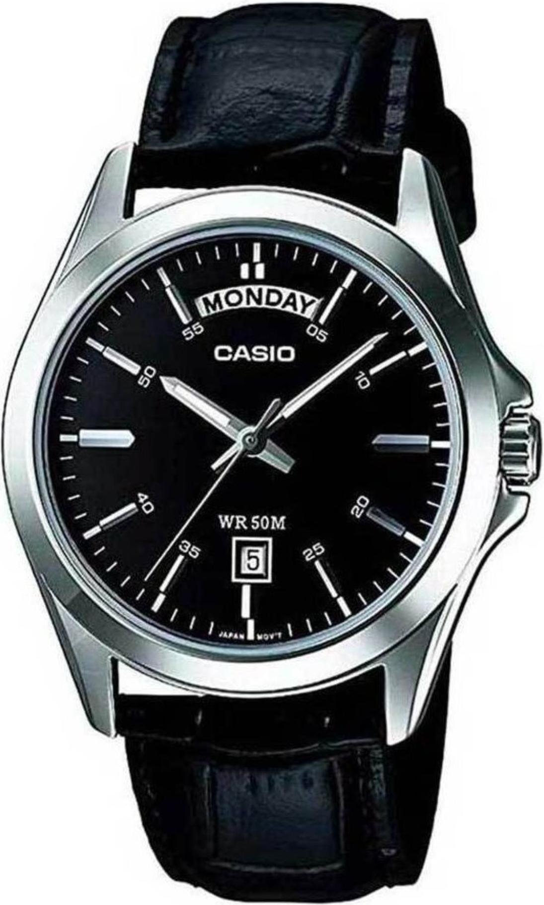 YSABVCP Bracelet de montre première couche for Casio Mtp1375 1374 1183 1303 1370 Mdv106 Swordfish, bracelet de montre en cuir véritable for homme, 22 mm(Black-Black-K1,22mm)