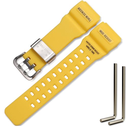GG-1000 Bracelet de rechange en résine compatible avec Casio Master of G MUDMASTER GG-1000-1A3JF pour homme GG-1000-1A5CR GG-1000-1A3J GWG-100-1A8JF (boucle argentée jaune)