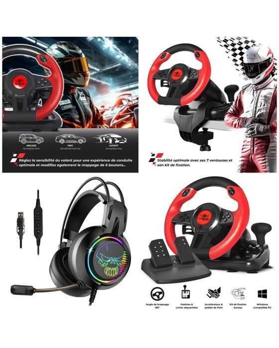 Casque Gamer - KOTION EACH - Modèle Bluetooth - Son 7.1 Surround - Basses Puissantes - Couleur Bleue