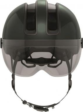 Casque de ville ABUS HUD-Y ACE - casque de vélo stylé avec visière et feu arrière LED magnétique et rechargeable - pour femmes et hommes - vert, taille L (57-61 cm)