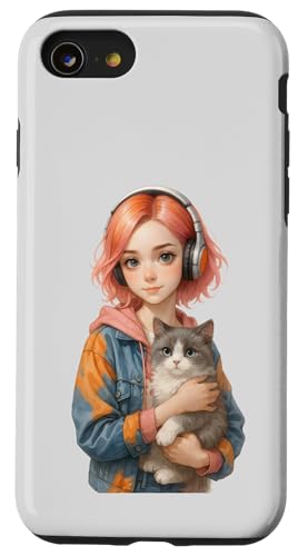 Kawaii Girl Casque Audio avec Chat Mignon Anime Streetwear Femme Coque pour iPhone SE (2020) / 7/8