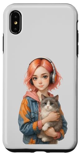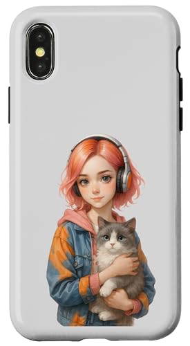 Kawaii Girl Casque Audio avec Chat Mignon Anime Streetwear Femme Coque pour iPhone XR