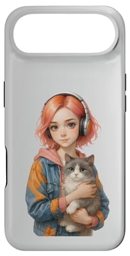 Kawaii Girl Casque Audio avec Chat Mignon Anime Streetwear Femme Coque pour iPhone Air
