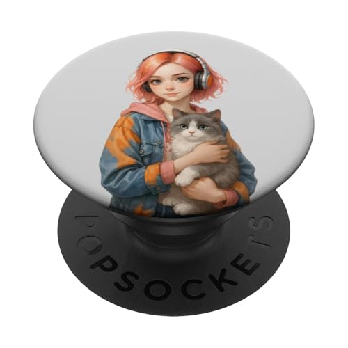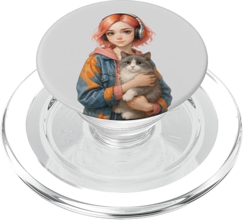 Kawaii Girl Casque Audio avec Chat Mignon Anime Streetwear Femme PopSockets PopGrip pour MagSafe