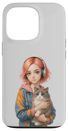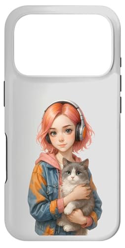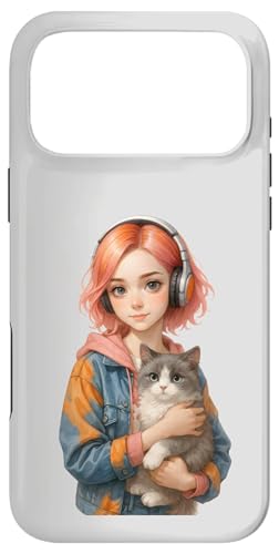 Kawaii Girl Casque Audio avec Chat Mignon Anime Streetwear Femme Coque pour iPhone 17 Pro