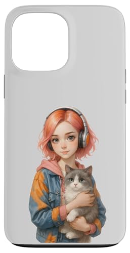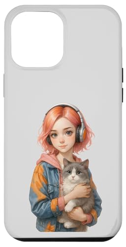 Kawaii Girl Casque Audio avec Chat Mignon Anime Streetwear Femme Coque pour iPhone 17 Pro Max