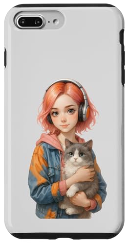Kawaii Girl Casque Audio avec Chat Mignon Anime Streetwear Femme Coque pour iPhone 7 Plus/8 Plus