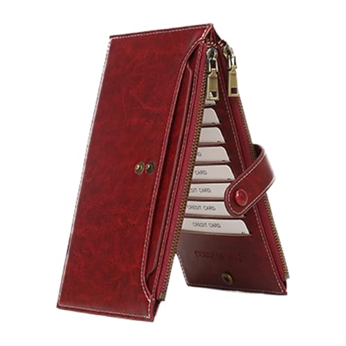 Porte-Monnaie pour Femmes - Portefeuille en Cuir PU à Pièces | Petit Portefeuille pour Femmes | pour Cartes Bancaires Billets Pliés Carte D'Identité Clé Casque Audio Rouge À Lèvres Voyage