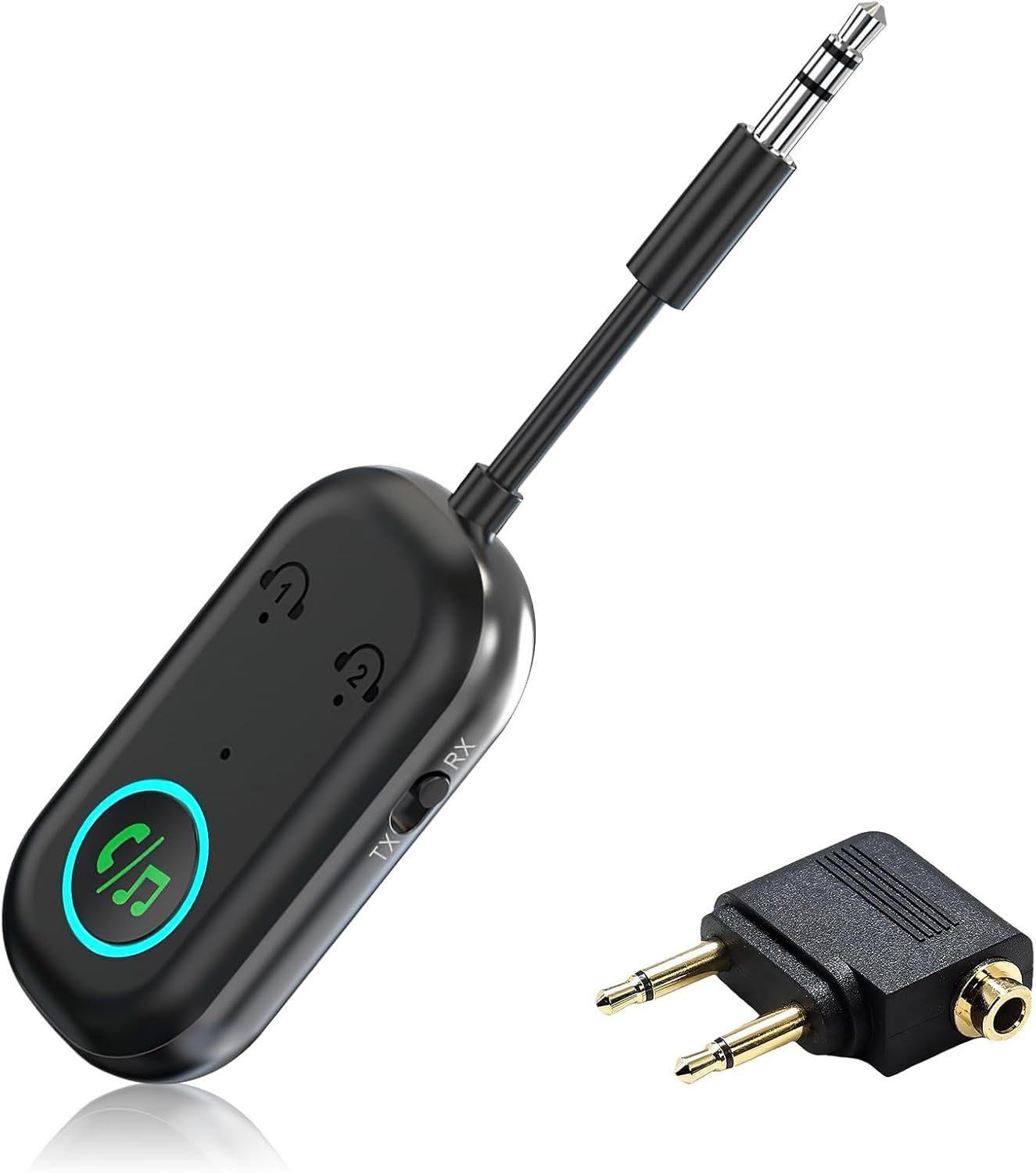 Émetteur récepteur Bluetooth 5.3, adaptateur Bluetooth 2 en 1 d'avion compatible avec 2 AirPods et écouteurs sans fil pour TV, émetteur audio jack 3,5 mm pour TV, pour T-V/avion/casque/Airpods/voiture