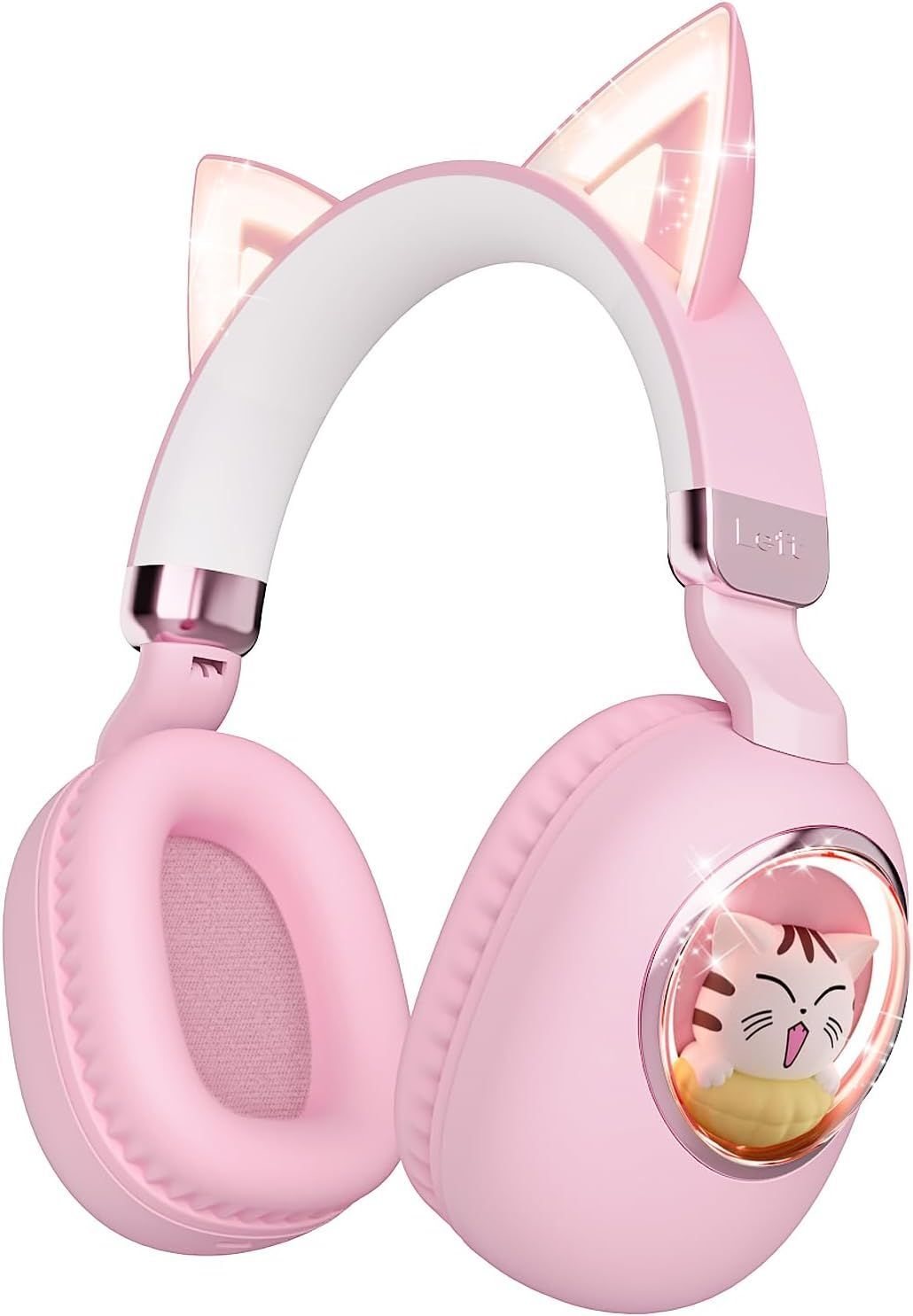 Casque Enfant Bluetooth Avec Oreilles De Chat Et Lumières Led \U2013 Casque Pliable Avec Limiteur De Volume 85Db \U2013 Sans Fil & Filaire Pour École, Voyage, Avion (Rose)