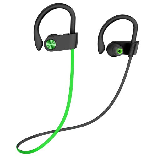 Casque Bluetooth 5.0, casque de course à pied avec 16 heures de lecture, basses + écouteurs stéréo sans fil avec écouteurs intra-auriculaires étanches IPX7 pour salle de sport, entraînement avec