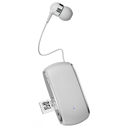 SUNSEATON Casque Bluetooth Business Clip, Ligne d'oreille Rétractable, Peut Pépondre, Enregistrer, Peut Insérer Une Carte TF Switch MP3, Ipx3 Waterproof, Compatible avec Smartphone Universel (Blanc)