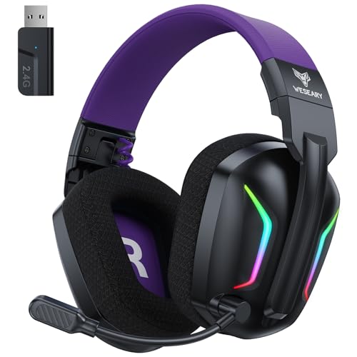 WESEARY WG1 Casque Gaming sans Fil, 2,4 GHz Casque Bluetooth sans Fil avec Micro pour PS5, PS4, PC, Switch, Mac, Mobile, Casque Gaming Pliable avec Son Stéréo et Éclairage LED, Batterie de 50h