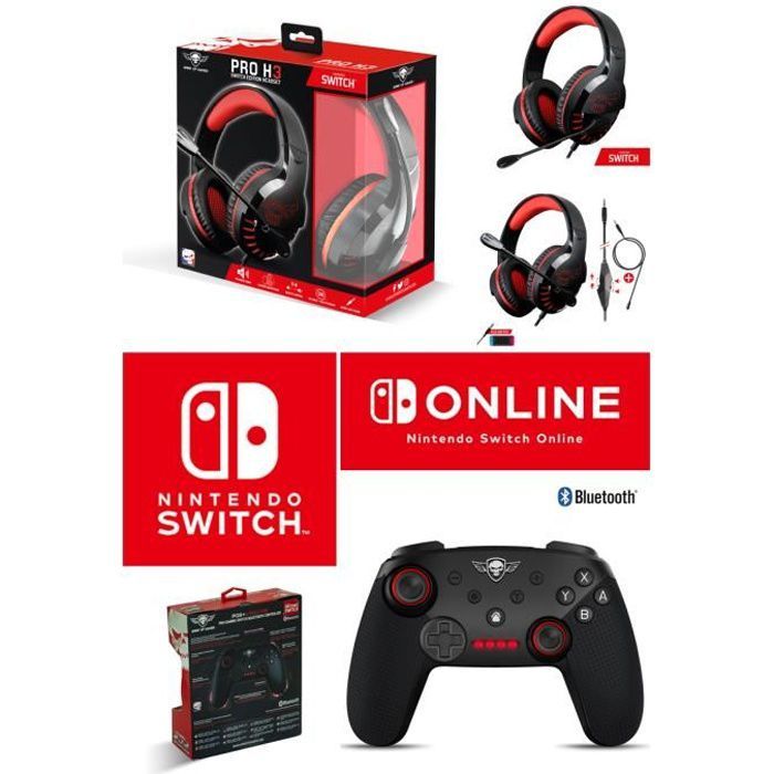 Manette Switch Bluetooth Color Stain Nintendo Pro Gaming + Casque Rouge Switch Pro H3 Spirit Of Gamer Switch Edition