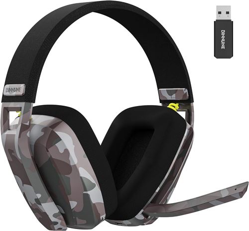 BINNUNE BW06 Casque Gaming sans Fil, 2,4 GHz Casque Bluetooth sans Fil avec Micro pour PS5, PS4, PC, Switch, Mac, Mobile, Casque Gaming Réduction du Bruit avec Son Stéréo, Batterie de 60h - Camouflage