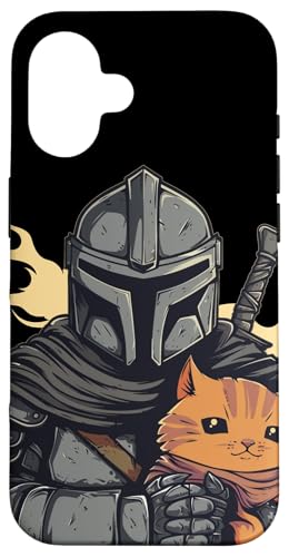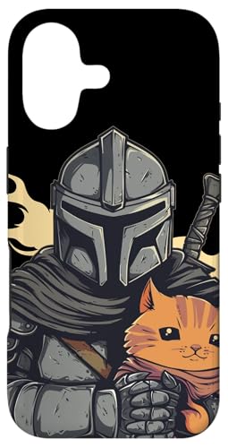 Chevalier Amusant avec Casque et Chat à la Main Coque pour iPhone 16