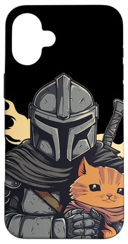 Chevalier Amusant avec Casque et Chat à la Main Coque pour iPhone 16 Plus