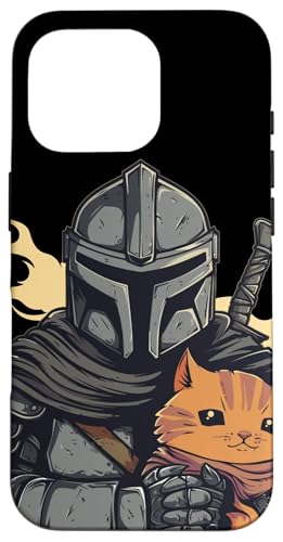 Chevalier Amusant avec Casque et Chat à la Main Coque pour iPhone 16 Pro