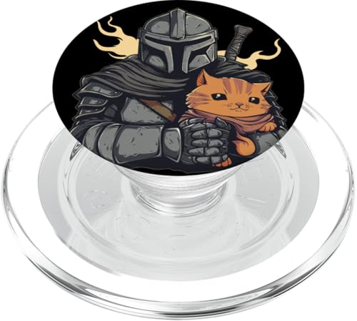 Chevalier Amusant avec Casque et Chat à la Main PopSockets PopGrip pour MagSafe