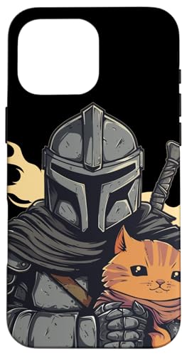 Chevalier Amusant avec Casque et Chat à la Main Coque pour iPhone 16 Pro Max