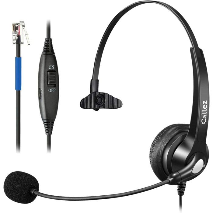 Casque Téléphone Fixe RJ9 avec Micro Anti-Bruit, Oreillette Téléphonique pour Cisco 7962G 7861 7821 7941G 8841 8845 8861 7811 6841 8945 9971 Plantronics M12 M22 Amplificateur Bureau Centre d'appel