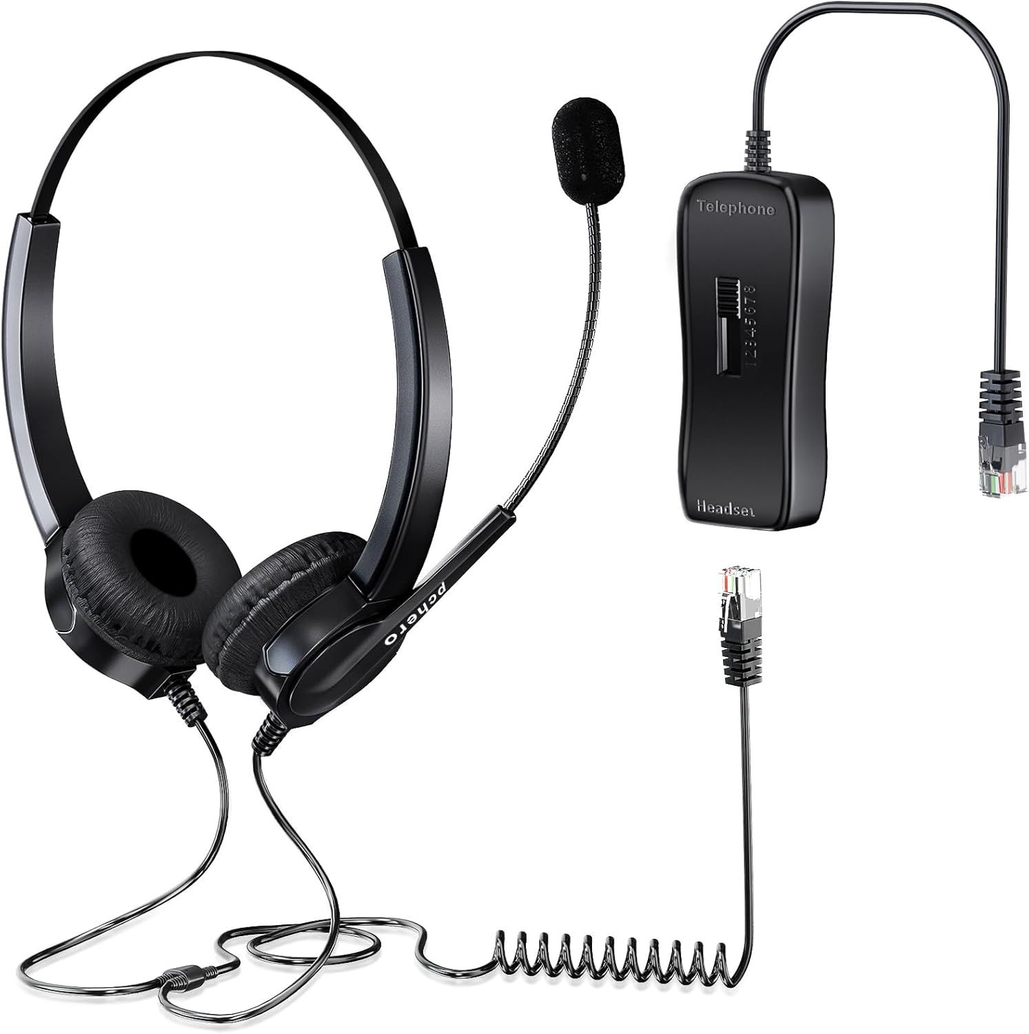 Régulier Casque Téléphones de Bureau, PChero Mains Libres Noise Cancelling Corded Headset Call Center Casque avec RJ9 Head & Mic (Can Pas Compatible avec Panasonic Cisco Avaya iPECS Lip)