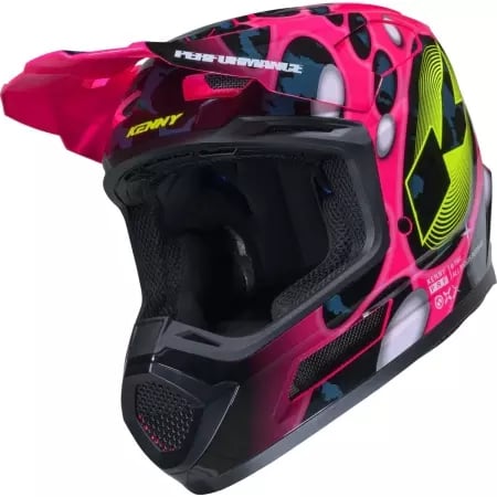 Casque Cross Kenny Performance Graphic + Pop System Rose Jaune Noir - Casque Cross KENNY
