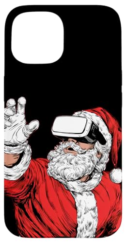 Graphique Père Noël coloré avec Casque de Jeu VR Coque pour iPhone 15 Plus