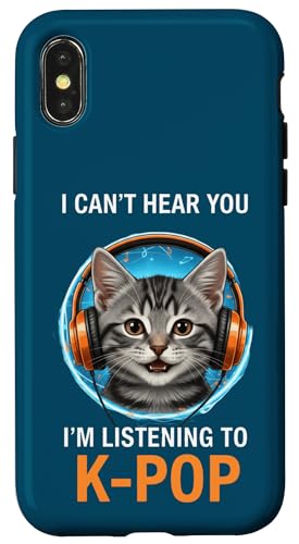 Cat Listening K-Pop Casque d'écoute drôle Kpop Fan Coque pour iPhone X/XS