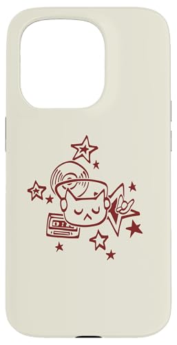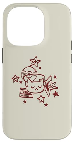 Y2K 80s Retro DJ Tomcat Cat avec Casque d'écoute Coque pour iPhone 14 Pro
