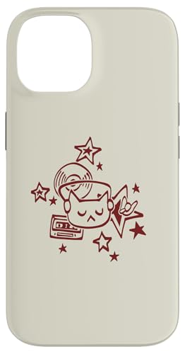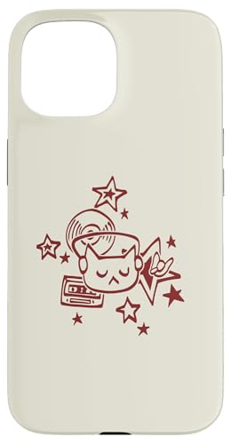 Y2K 80s Retro DJ Tomcat Cat avec Casque d'écoute Coque pour iPhone 15