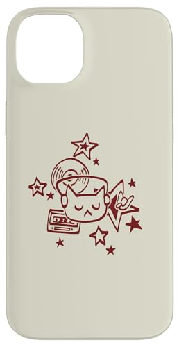 Y2K 80s Retro DJ Tomcat Cat avec Casque d'écoute Coque pour iPhone 14 Plus