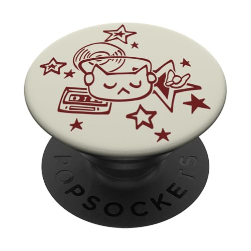 Y2K 80s Retro DJ Tomcat Cat avec Casque d'écoute PopSockets PopGrip Adhésif