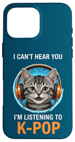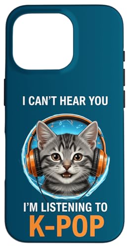 Cat Listening K-Pop Casque d'écoute drôle Kpop Fan Coque pour iPhone 16 Pro