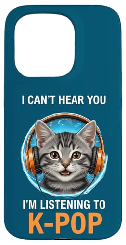 Cat Listening K-Pop Casque d'écoute drôle Kpop Fan Coque pour iPhone 15 Pro