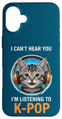 Cat Listening K-Pop Casque d'écoute drôle Kpop Fan Coque pour iPhone 16 Plus