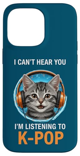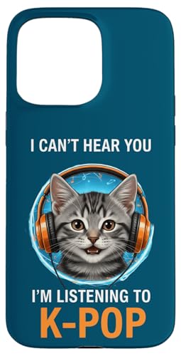 Cat Listening K-Pop Casque d'écoute drôle Kpop Fan Coque pour iPhone 15 Pro Max