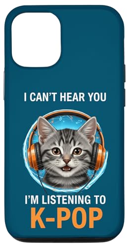Cat Listening K-Pop Casque d'écoute drôle Kpop Fan Coque pour iPhone 12/12 Pro