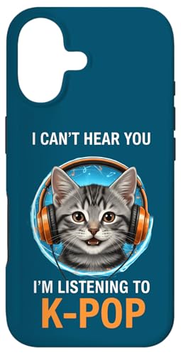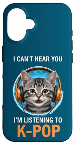 Cat Listening K-Pop Casque d'écoute drôle Kpop Fan Coque pour iPhone 16