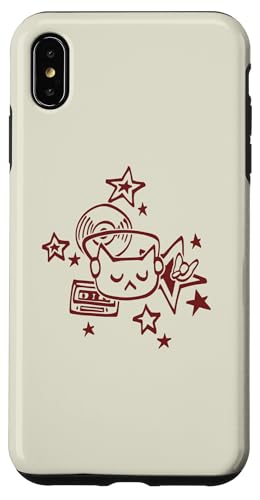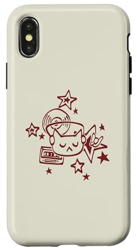 Y2K 80s Retro DJ Tomcat Cat avec Casque d'écoute Coque pour iPhone XS Max