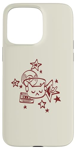 Y2K 80s Retro DJ Tomcat Cat avec Casque d'écoute Coque pour iPhone 15 Pro