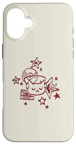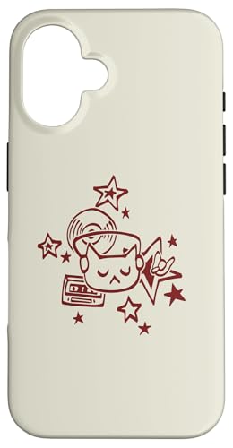 Y2K 80s Retro DJ Tomcat Cat avec Casque d'écoute Coque pour iPhone 16 Plus