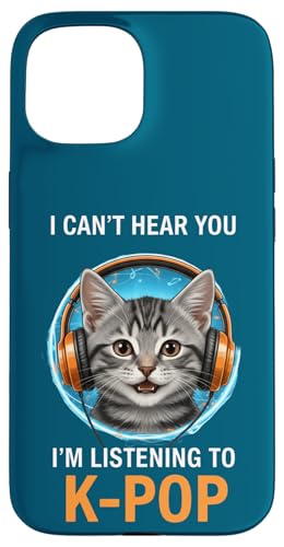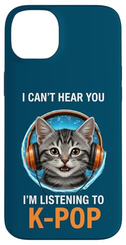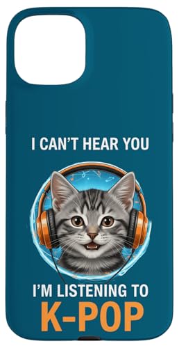 Cat Listening K-Pop Casque d'écoute drôle Kpop Fan Coque pour iPhone 15 Plus