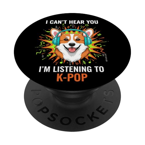 Corgi K-Pop Casque d'écoute Amusant pour Les Amoureux des Chiens PopSockets PopGrip Adhésif