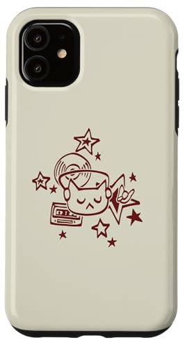 Y2K 80s Retro DJ Tomcat Cat avec Casque d'écoute Coque pour iPhone 11
