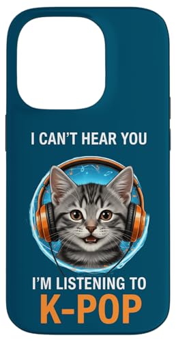 Cat Listening K-Pop Casque d'écoute drôle Kpop Fan Coque pour iPhone 14 Pro